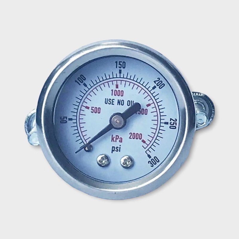 The pressure gauge has a dial size 40mm, the case of the gauge comes from black painted steel, and the connection and bourdon tube are made by brass. The pressure range of the gauge is 300 psi. And the gauge has a dual scale kPa & psi.